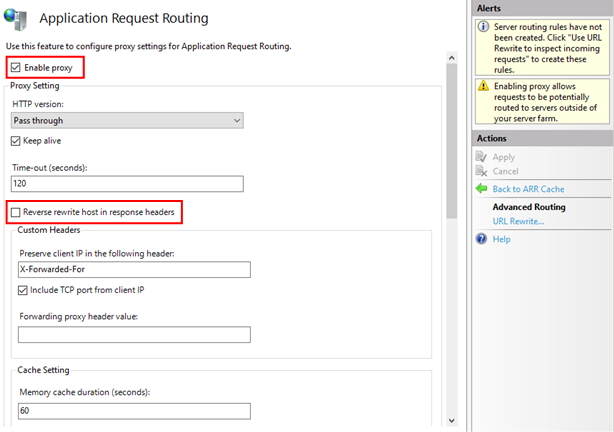If not enabled, select ‘Enable proxy’. If not disabled, disable 'reverse rewrite host in response headers’ and click Apply.