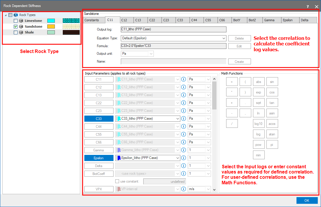 - Once you complete defining equations for all the coefficients of interest, repeat the above steps for the remaining rock types.