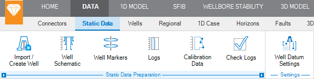 Go to DATA > Static Data > Static Data Preparation. On this strip you can create or import the following well data: