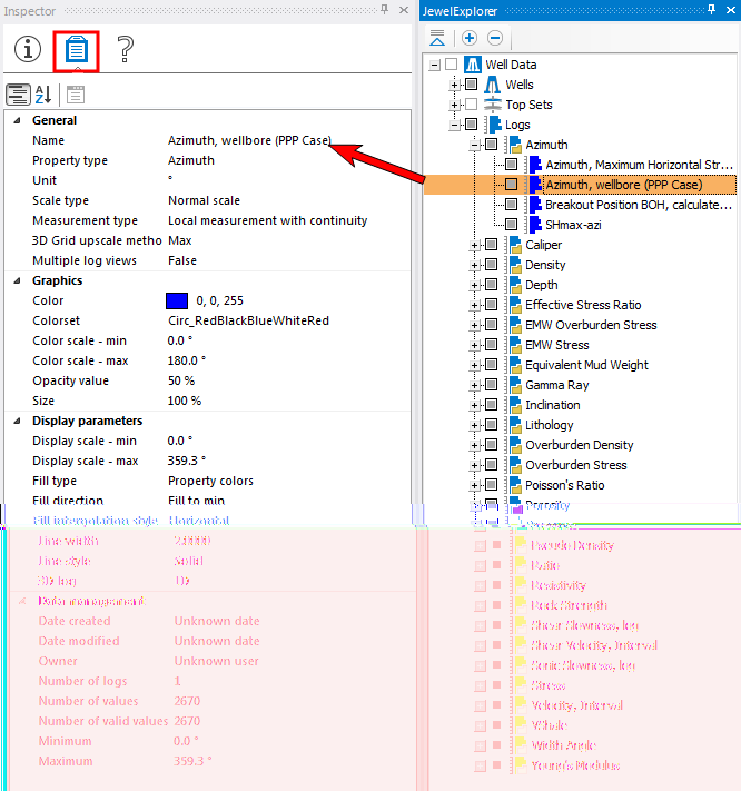 When you select a property in the JewelExplorer, the corresponding properties are available in the Property Inspector tab of the Inspector (Panes > Inspector) where you can also adjust the display units.