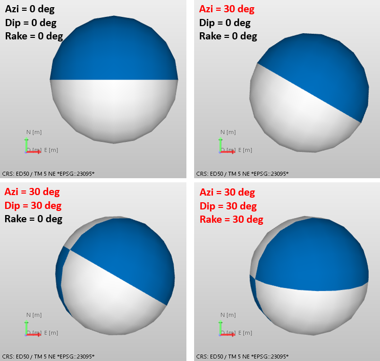 When you select Beach Ball as shape type for your microseismic event, this is how the orientation is displayed (top view):