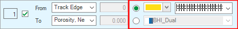Color This is the default color of the selected log type as it is defined in the Property Catalog (HOME > Settings). You can change the color of individual logs by clicking on the drop-down arrow and selecting a different color from the color palette. The color change only applies to the compositor track and it does not change the default color of the log.