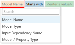 Volumetric concepts can consist of a large number of domain models, and have their related input properties and co-dependencies with other model inputs. This can make the information in the dependency table very complex to apprehend. With the filtering and search functions on the form, you can view only the relevant information on the form.
