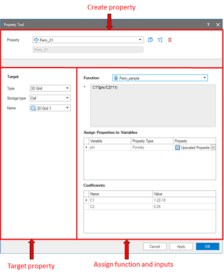 - Click Apply to create the property model and continue working with the Property Tool, or click OK to create the Property model and exit the form.