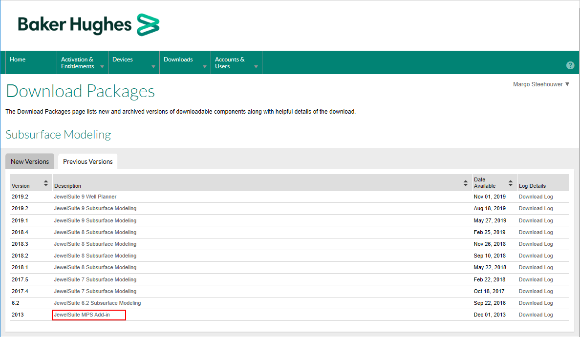 On the Baker Hughes software portal go to the Your Downloads section, and select Baker Hughes Reservoir Software.