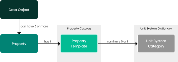 • A property always has a property template (from the Property Catalog) associated with it to give it a logical meaning.